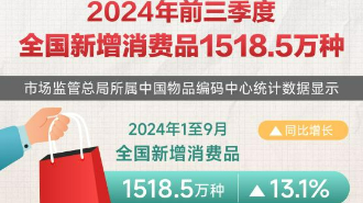 ![]() 2024年前三季度全國(guó)新增消費(fèi)品1518.5萬(wàn)種 |